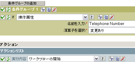 たとえば、電話番号の変更時にワークフローを開始する場合は、属性を選択します。