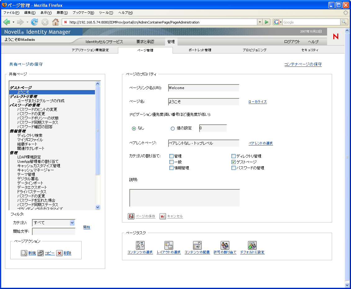 ページのURI名を指定します(ユーザインタフェースのURL内に表示されます)。たとえば、次のようにURIを指定すると: MyContainerPage URLでは次のように\'95\'5c示されます。