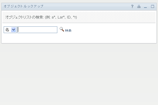 実行時に、識別ポートレットはユーザの操作に応じて、ContainerLookupポートレットまたはParamLookupポートレットを呼び出すこともあります。ContainerLookupポートレットは、ユーザがコンテナオブジェクトに対してルックアップを実行した場合に識別ポートレットにより起動されます。一方、ParamLookupポートレットは、ユーザが属性に対してルックアップを実行した場合に起動されます。ユーザは、[ルックアップ]ボタンをクリックしてこれらのポートレットを起動します。これらのポートレットの実行時の外観は似ています。