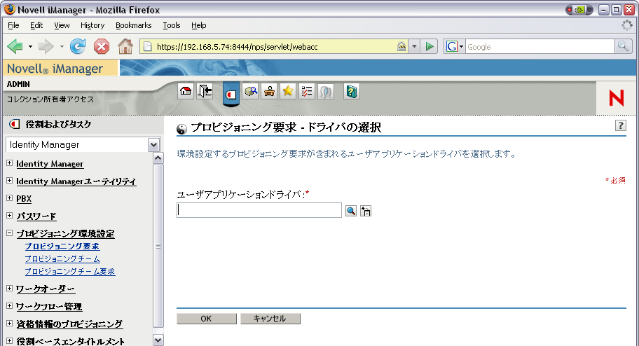 Identity Managerユーザアプリケーションドライバを選択する
