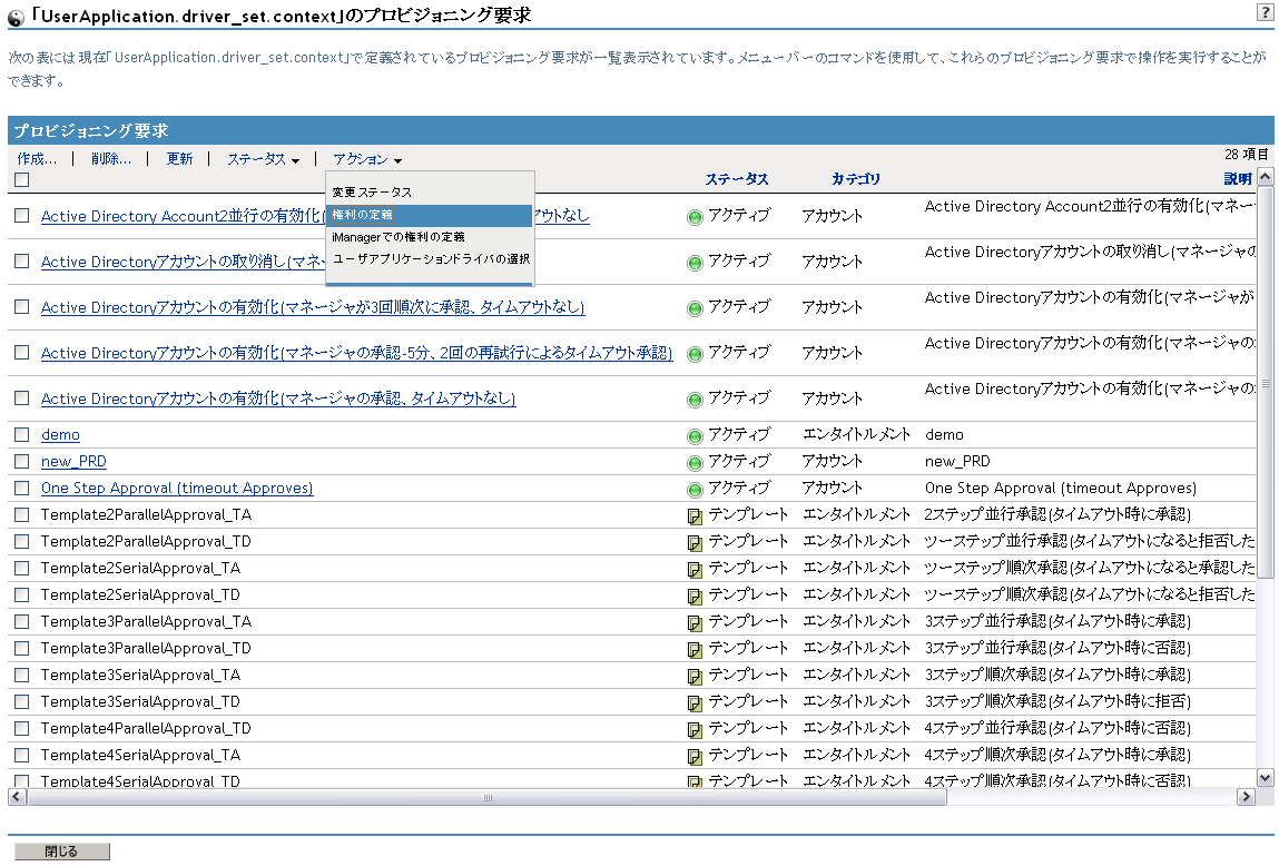 iManagerでプロビジョニング要求の権利を定義する