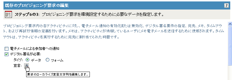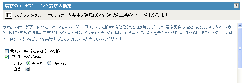 チェックボックスを選択、または選択解除して、プロビジョニング要求を開始するためにデジタル署名が必要かどうかを指定します。