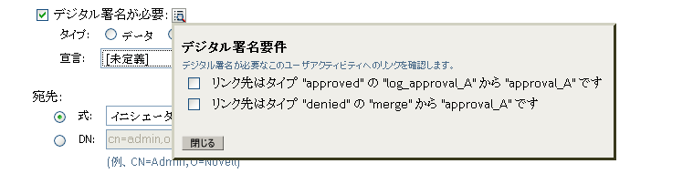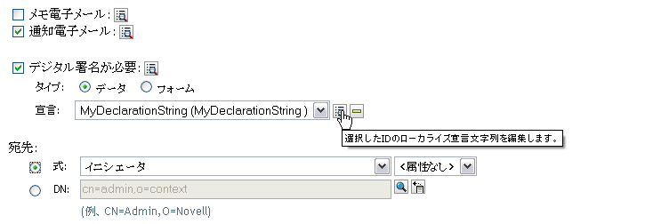 警告:デジタル署名したドキュメントを保持するには、Novell Audit(またはSentinel)を使用する必要があります。デジタル署名ドキュメントはユーザアプリケーションデータベースには保管されません。ログデータベースに保管されます。これらのドキュメントを保管するには、ログを有効にする必要があります。