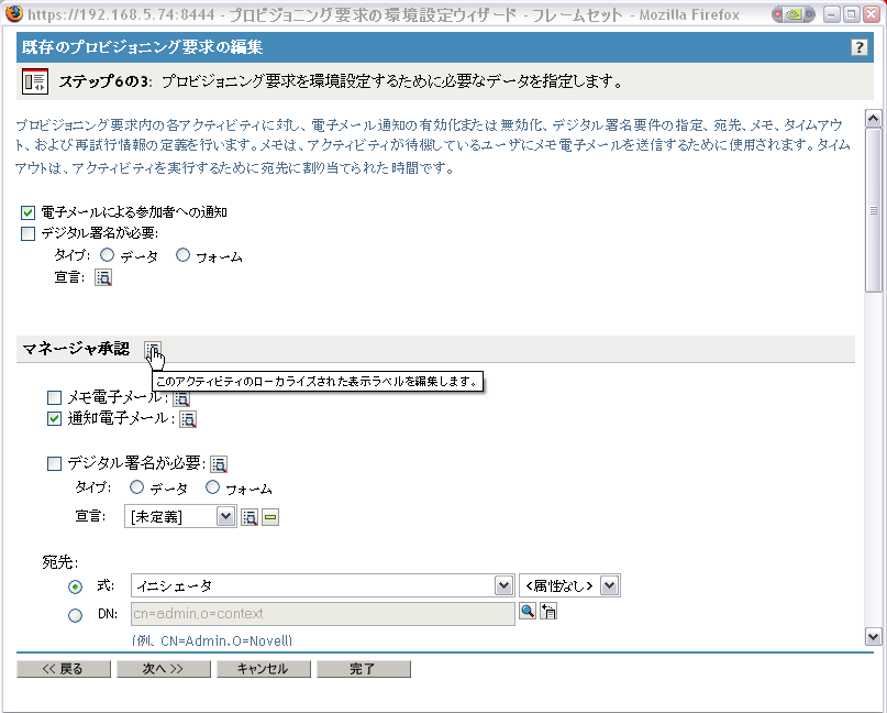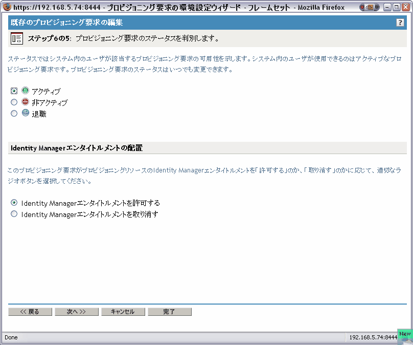 の説明に従い、要求定義の初期ステータスを指定します。プロビジョニング要求の初期ステータスの指定