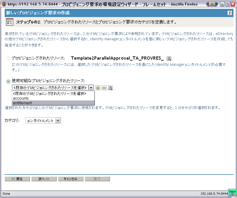 ドロップダウンリストから、プロビジョニングされたリソース定義のカテゴリを選択します。