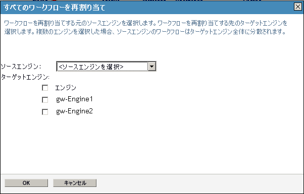 再割り当てするプロセスがあるワークフローエンジンを選択するには、リストを使用します。
