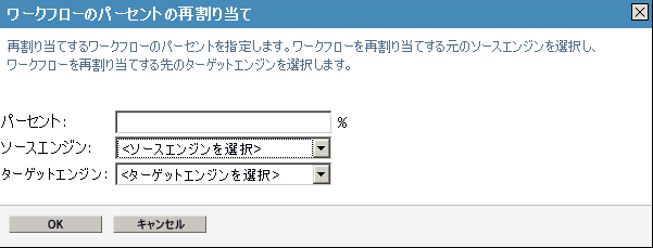 フィールドに、別のワークフローエンジンに再割り当てするワークフロープロセスのパーセントを入力します。