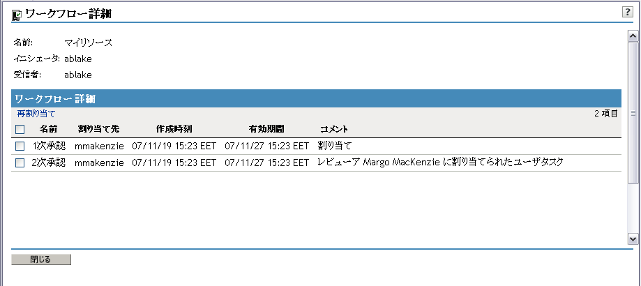 特定のワークフローインスタンスについての詳細を\'95\'5c示する