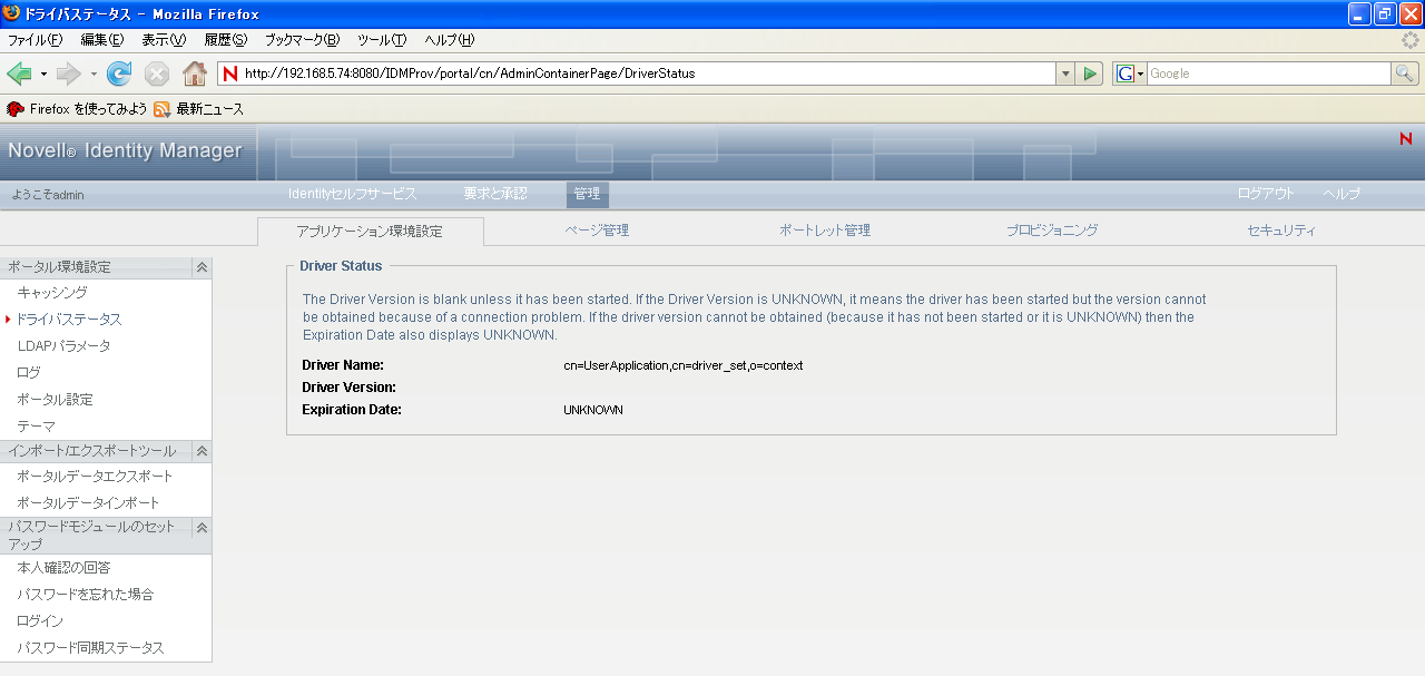 アイデンティティボールト(LDAPプロバイダ)へ接続時のIdentity Managerユーザアプリケーション。