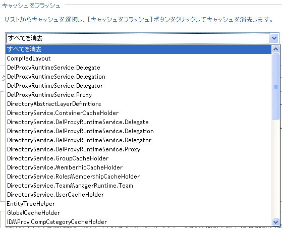 ページのセクションで、ドロップダウンからフラッシュする対象のキャッシュを選択します(またはを選択します)。