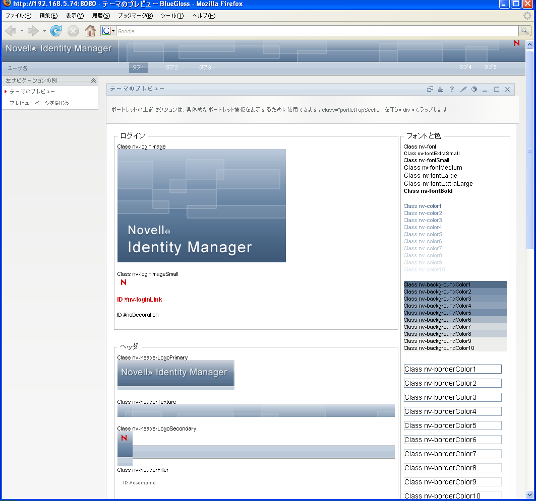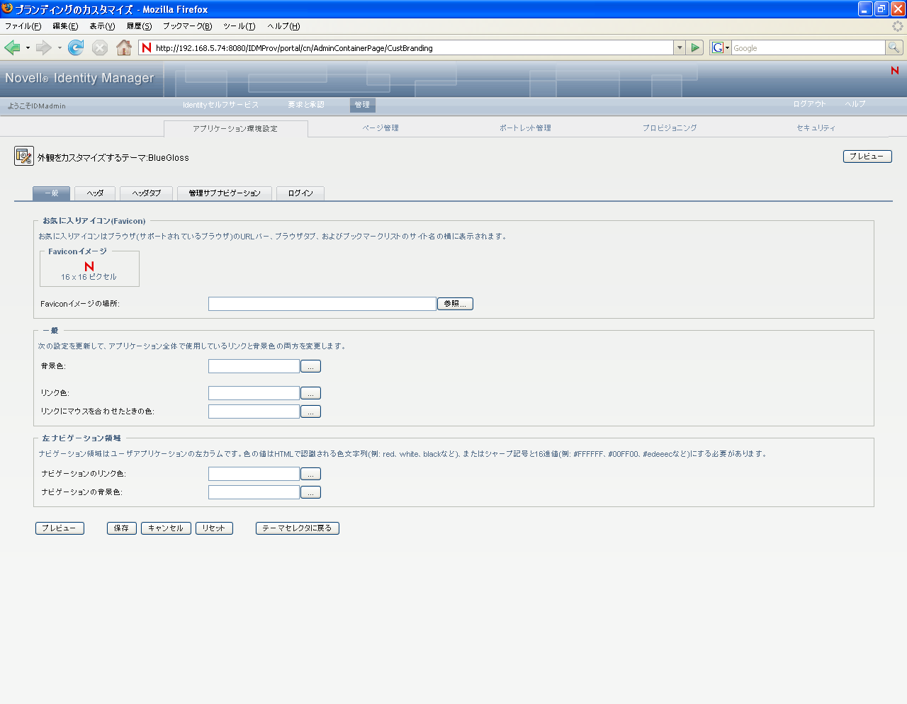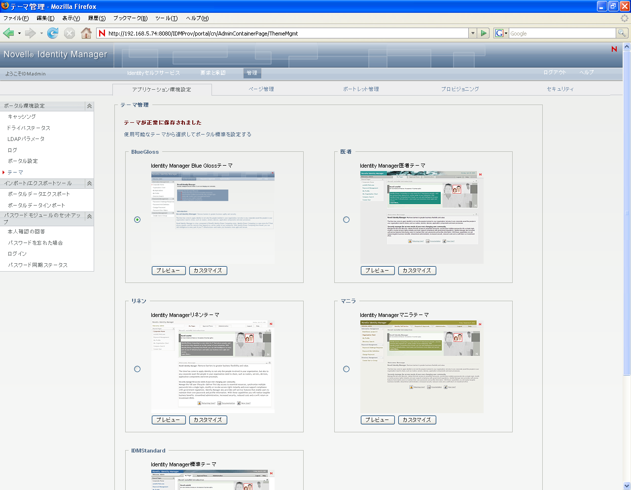 気に入ったテー\'83\'7dが見つかったら、そのテー\'83\'7dをIdentity Managerユーザインタフェースの現在のテー\'83\'7dとして選択できます。
