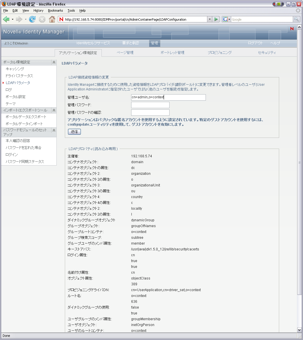 Identity Managerユーザアプリケーションの他のLDAPプロパティを表示する. これらの設定の値は、ユーザアプリケーションのインストール時に指定されます。