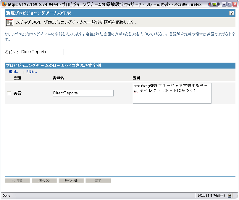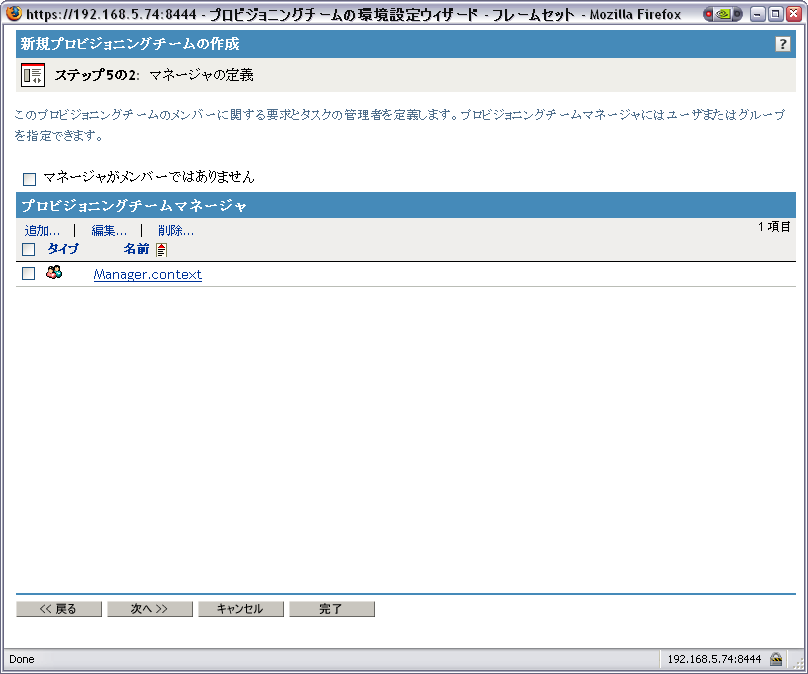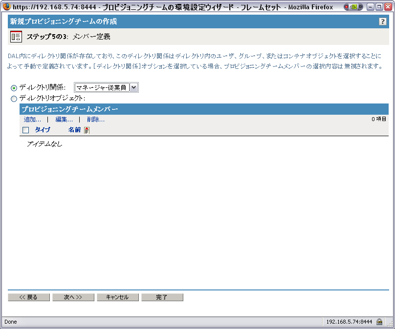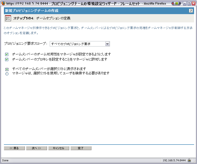 iManagerで、のを選択してプロビジョニングチームを定義します。