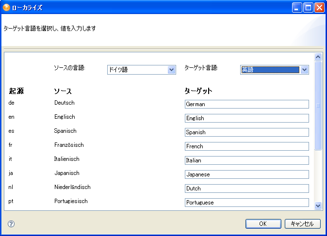 サポートされるすべてのロケールを1つのダイアログボックスでローカライズできます。このボタンをクリックすると、次のダイアログボックスが表示されます。
