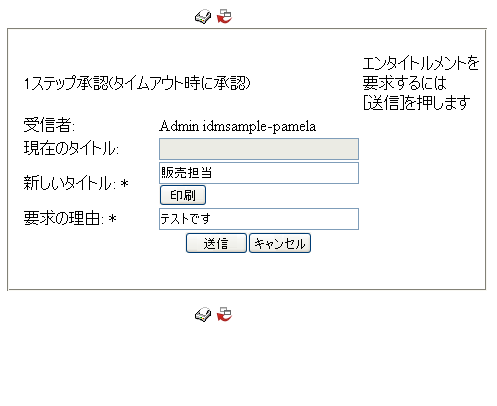 JavaScriptを使用してボタンを要求または承認フォームに追加できます。フォームを印刷する機能を追加するには、JavaScriptライブラリPrintForm.jsへのURLを追加します。ライブラリは次のURLにあるユーザアプリケーションWAR内にあります。/javascript/JUICE/form/PrintForm.js。オプションで次のことを実行できます。