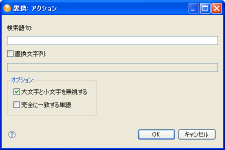 検索テキストを置換する場合は、をクリックして、検索文字列を置換する文字列を入力します。