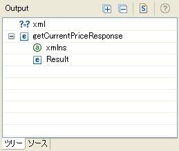 出力ビューには、WebサービスのWSDLドキュメントから派生した出力メッセージが表示されます。アクションモデルを実行する際には、出力ビューを使用してWebサービスから戻される値を表示します。