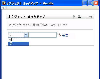 場合によっては、ユーザが候補の値のリストからDNを検索したり選択できるようにすることもできます。[オブジェクトセレクタ]ダイアログボックス([オブジェクトルックアップ]ダイアログボックスとも呼ばれる)が、この機能を提供します。[オブジェクトセレクタ]ダイアログボックスのコンテンツは、フォームコントロールのプロパティ(「表 6-28」を参照)と、どのようにDALプロパティを定義しているか(「[DNLookup]コントロールタイプの定義とオブジェクトセレクタのコンテンツ」を参照)によって制御されます。