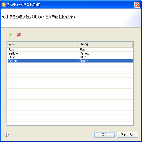 チェックボックスのラベルと値を構成する一連の静的な値を定義できます。ボタンをクリックすると、次に示すリスト値のダイアログボックスが開きます。