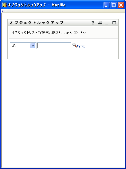 [オブジェクトセレクタ]ダイアログボックスが、オブジェクトルックアップを実行するか、コンテナルックアップを実行するかを決定します。次に、オブジェクトルックアップの例を示します。