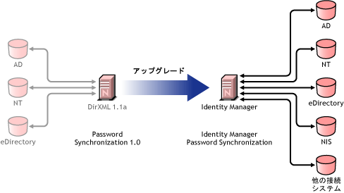 図 2-4 Password Synchronization 1.0からIdentity Managerのパスワード同期へのアップグレード