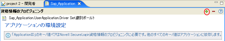 アプリケーションに必要な認証キーを追加するため、[]アイコン