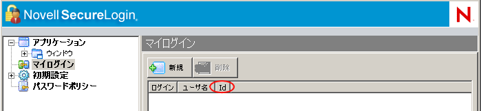 アプリケーションの認証キーを見つけるには、そのアプリケーションのユーザに対し、SecureLogin資格情報を手動作成し、そのユーザでログインします。ユーザがログインすると、SecureLoginの管理ウィンドウ内の[My Logins (マイログイン)]に、認証キー情報が表示されます。