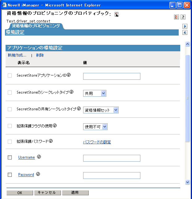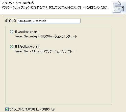 アプリケーションオブジェクトが作成されたら、セクション 5.5, Novell SecretStoreの資格情報プロビジョニングポリシーの作成に進んでください。