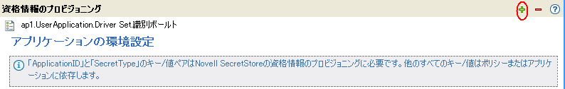 アプリケーションに必要な認証キーを追加するため、[]アイコン