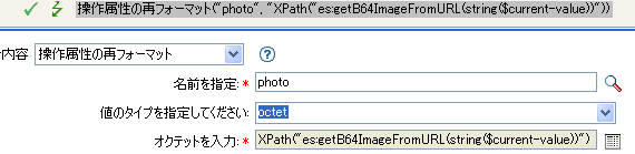 DirXMLスクリプトポリシーは、ECMAScript関数getB64ImageFromURL()を呼び出すことによって、写真へのURLリファレンスである属性をBase64エンコード化写真データへ変換します。このポリシーは、入力変換または出力変換ポリシーとして使用できます。