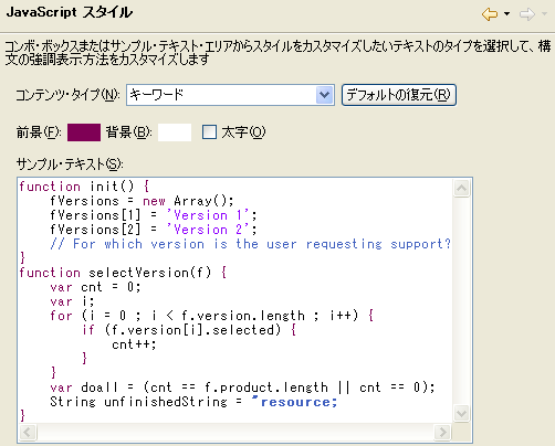 Designerは、JavaScriptファイルの表示方法および使用方法を変更できます。ECMAScriptは、JavaScriptであり、これらの初期設定はECMAScriptエディタに影響します。初期設定を変更する