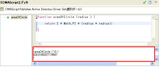 ECMAScriptエリアのシェルエリアでは、ECMAScriptを実行できます。ECMAScriptが作成された後に、スクリプトの機能をテストすることができます。