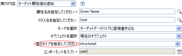 図 4-5 ターゲット属性値の追加アクション