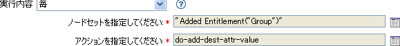 次の例では、ターゲット属性値の追加アクションがGroupエンタイトルメントごとに実行され、現在の操作に追加されます。