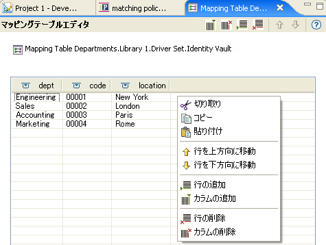 (オプション) 追加行を追加するには、マッピングテーブルエディタ内で右クリックして[]を選択します。