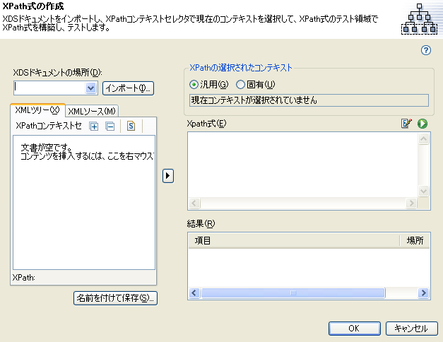 XPathビルダは、任意のXMLドキュメントに対してXPath式を作成してテストできる強力なツールです。XDSドキュメントに対して異なる式をテストして、式をテストしている間にXDSドキュメントを変更することができます。XPath式の詳細については、『Identity Manager 3.5.1ポリシーの理解』の「 XPath 1.0式