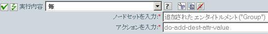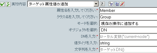 次の例では、ターゲット属性値の追加アクションがGroupエンタイトルメントごとに実行され、現在の操作に追加されます。