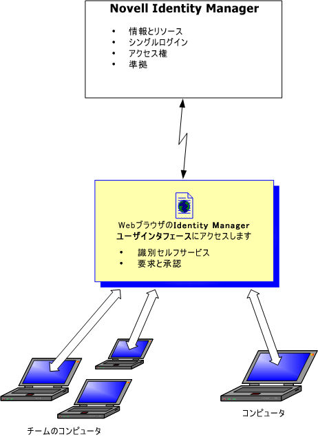 Novell® Identity Managerは、ユーザコミュニティのアクセスニーズを安全に管理するために組織によって使用されるシステムソフトウェア製品です。 ユーザコミュニティの所属メンバーは、Identity Managerの導入メリットをさまざまな形で享受できます。 たとえば、Identity Managerを使って次のことを実行できます。