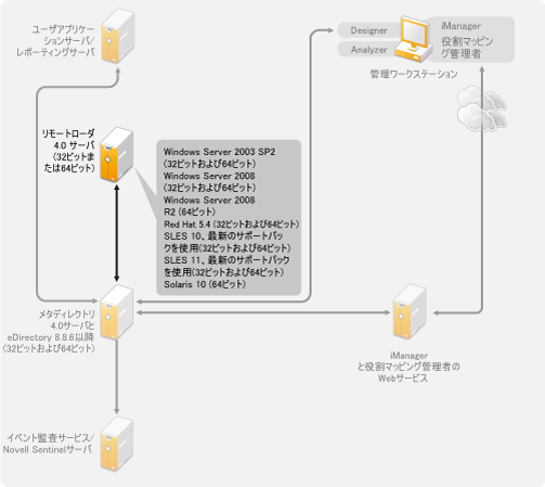 リモートローダは32ビットモードおよび64ビットモードで実行します。Novellでは、Identity Managerをインストールする前に、製造元の自動更新機能を使用して最新のOSパッチを適用することをお勧めします。 |