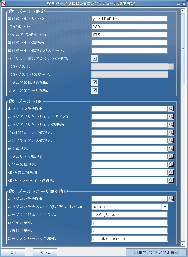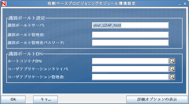 各オプションの詳細については、セクション A.0, IDMユーザアプリケーション環境設定の参照を参照してください。