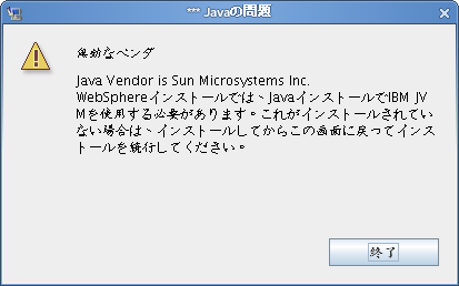 IBM Java環境を使用して、次に示すインストーラを開始します。