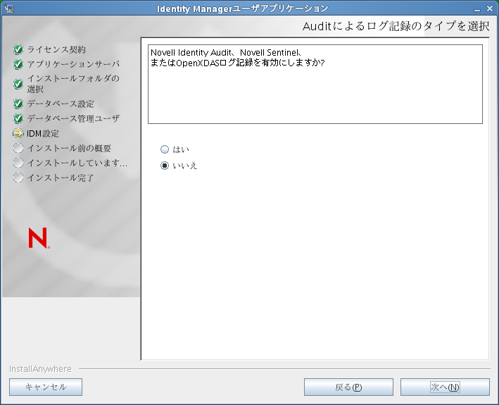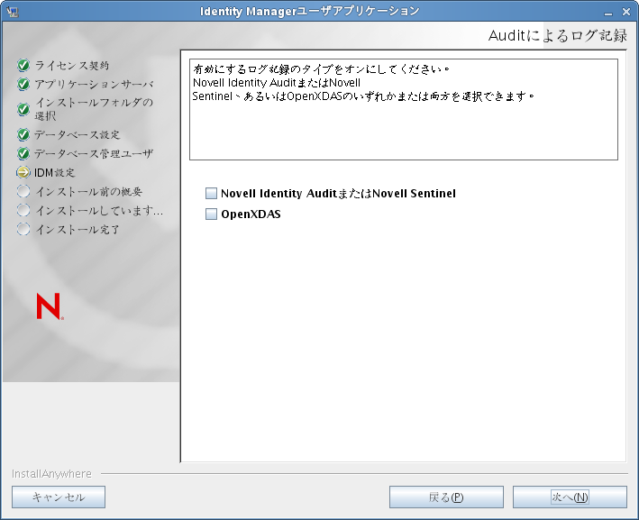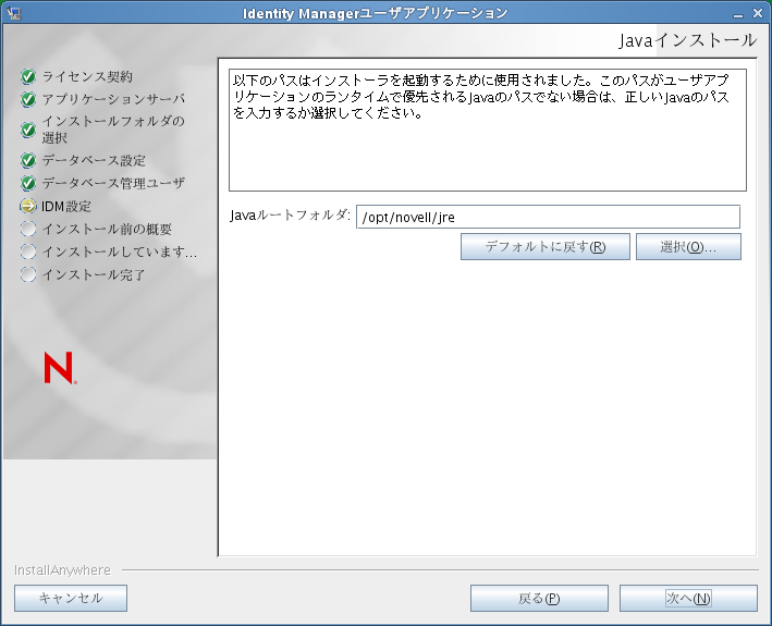Novell-Custom-Install.logには、インストール中に行ったユーザアプリケーション環境設定についての情報があります。