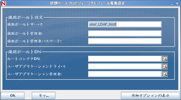 必須。ルートコンテナのLDAP識別名を指定します。 これは、ディレクトリ抽象化層で検索ルートが指定されない場合に、デフォルトのエンティティ定義検索ルートとして使用されます。