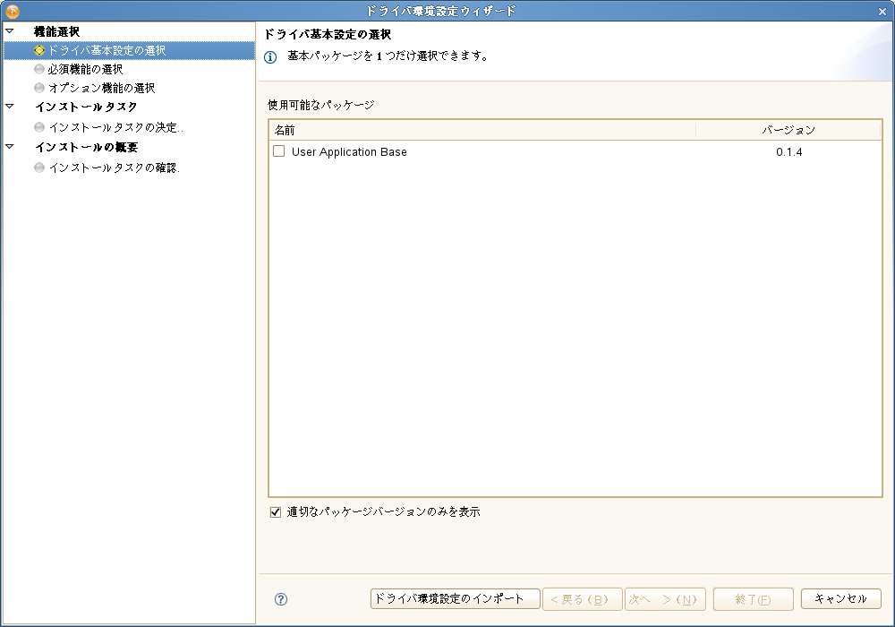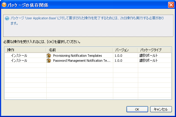 ドライバを設定する前に、パッケージカタログに必要なすべてのパッケージが含まれていることを確認する必要があります。新しいIdentity Managerプロジェクトを作成すると、新しいプロジェクトにいくつかのパッケージをインポートするようにユーザインタフェースによって自動的に要求されます。プロジェクトの作成時にパッケージをインポートしない場合、下記のように、後でそれらをインストールする必要があります。