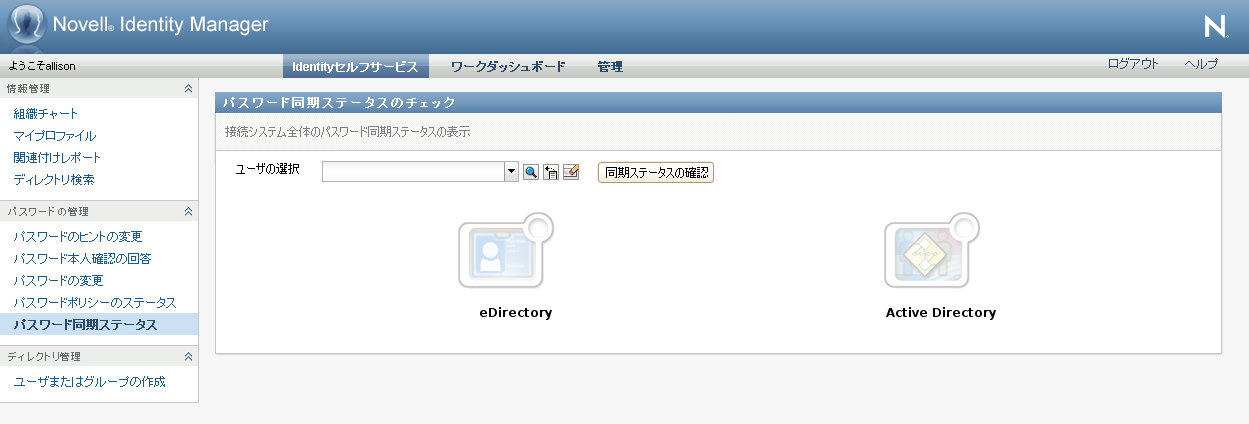 [パスワード同期ステータス]ページを使用して、アプリケーション間でパスワードが同期されているかを判断します。 パスワードが必ず同期されてから他のアプリケーションにアクセスします。 同期が完了する前にアプリケーションにアクセスすると、アプリケーションアクセスの問題が発生します。