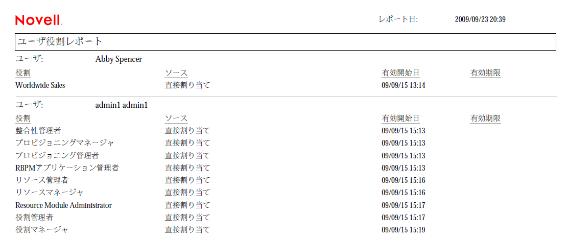 図 19-4 ユーザエンタイトルレポート: 各ユーザのエンタイトルメント詳細のサンプル