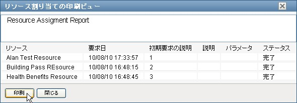 リソース割り当てを印刷するには、ナビゲーション領域におけるナビゲーション権限を持っている必要があります。