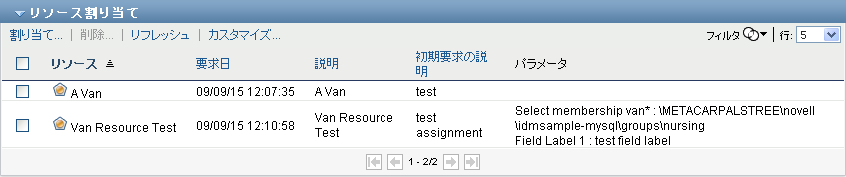 [リソースの追加]ダイアログボックスに、選択したリソースと[リソース要求]フォームで定義されたその他すべてのフィールドが表示されるようになります。