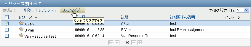 [ワークダッシュボード]のセクションを使用すると、カラムを選択および選択解除でき、タスクリスト表示のカラムを並べ替えることもできます。カラムの選択および順序は[リソース割り当て表示のカスタマイズ]ダイアログボックス内の設定によって制御されます。カラムリストを変更する、またはカラムを並べ替える場合には、カスタマイズ項目は他の初期設定とともに識別ボールトに保存されます。