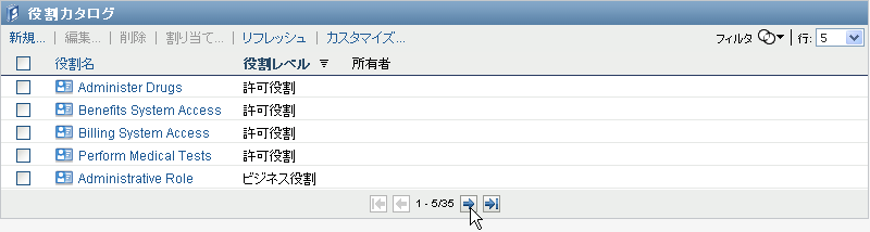 役割リリストで別のページにスクロールするには、リストの下部にある[次へ]、[前へ]、[最初]、または[最後]ボタンをクリックします。